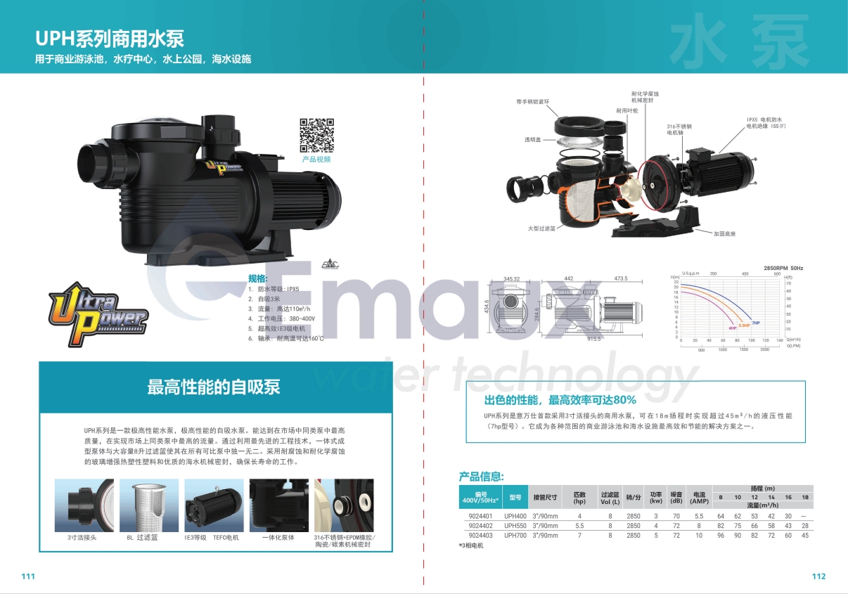 UPH系列是一款極高性能水泵,極高性能的自吸水泵。能達(dá)到在市場(chǎng)中同類泵中最高質(zhì)量,在實(shí)現(xiàn)市場(chǎng)上同類泵中最高的流量。通過(guò)利用最先進(jìn)的工程技術(shù),一體式成型泵體與大容量8升過(guò)濾籃使其在所有可比泵中獨(dú)一無(wú)二。采用耐腐蝕和耐化學(xué)腐蝕的玻璃增強(qiáng)熱塑性塑料和優(yōu)質(zhì)的海水機(jī)械密封,確保長(zhǎng)壽命的工作。