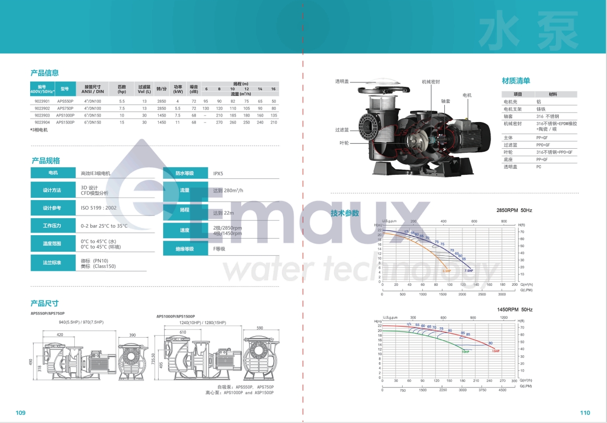 意萬(wàn)仕(EMAUX)Hydrau-Power APS商用水泵是為滿足高流量、高效率的應(yīng)用需求而設(shè)計(jì)的一款功能強(qiáng)大、性能穩(wěn)定的水泵。該泵采用高強(qiáng)度耐腐蝕性材料制造,并配有大容量過(guò)濾籃。這款商用水泵適用于各種不同的應(yīng)用場(chǎng)合,包括各類(lèi)商業(yè)游泳池、水上公園、海水設(shè)施等。