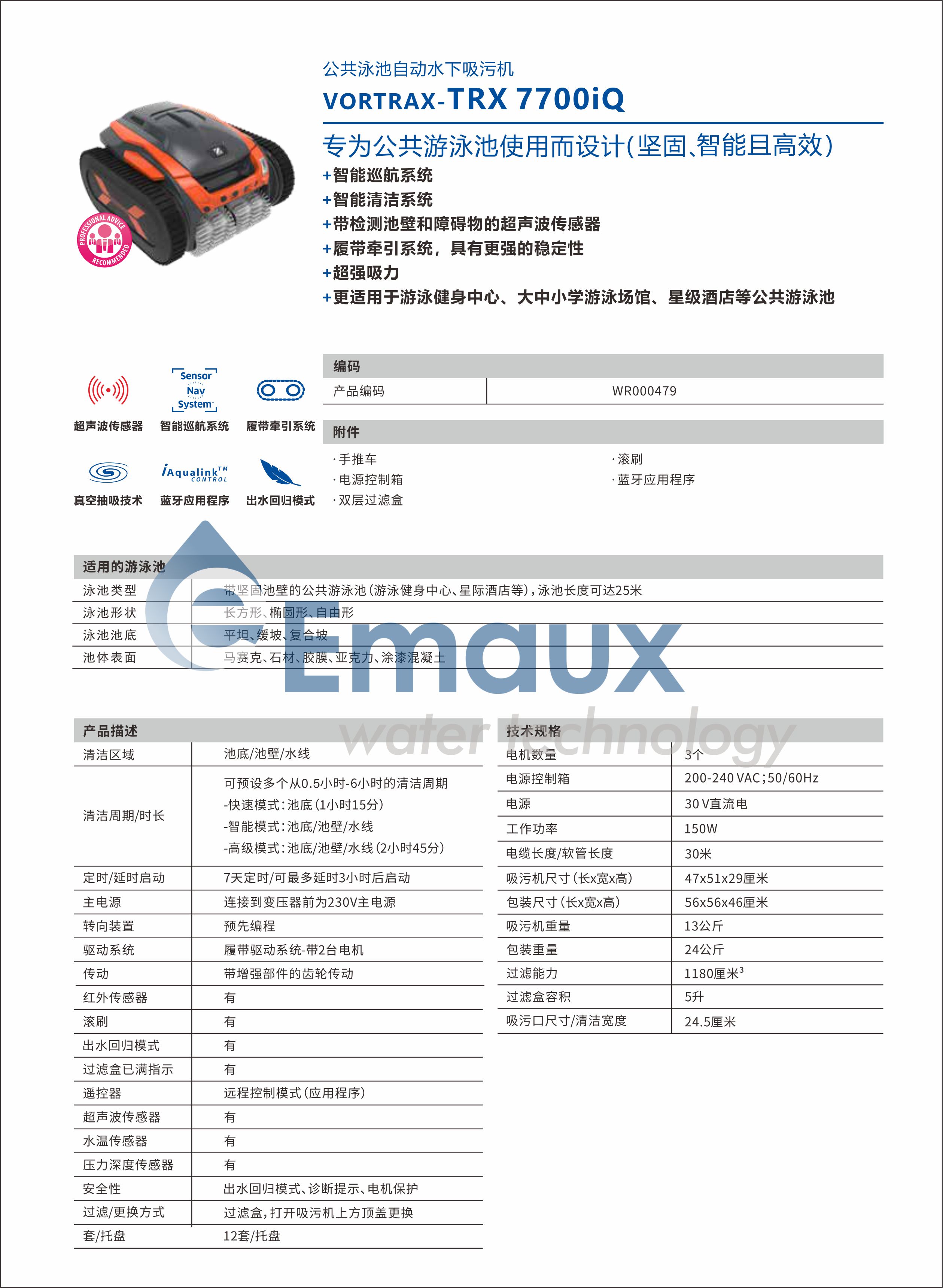 ★氣旋抽吸技術+超強吸污能力 ★雙層過濾袋+過濾盒一鍵式更換 ★牽引系統(tǒng)具有更強的穩(wěn)定性 ★帶檢測池壁和障礙物的超聲波傳感器 ★能配合手機APP遠程控制 ★智能巡航系統(tǒng) ★配有手推車,使用更方便