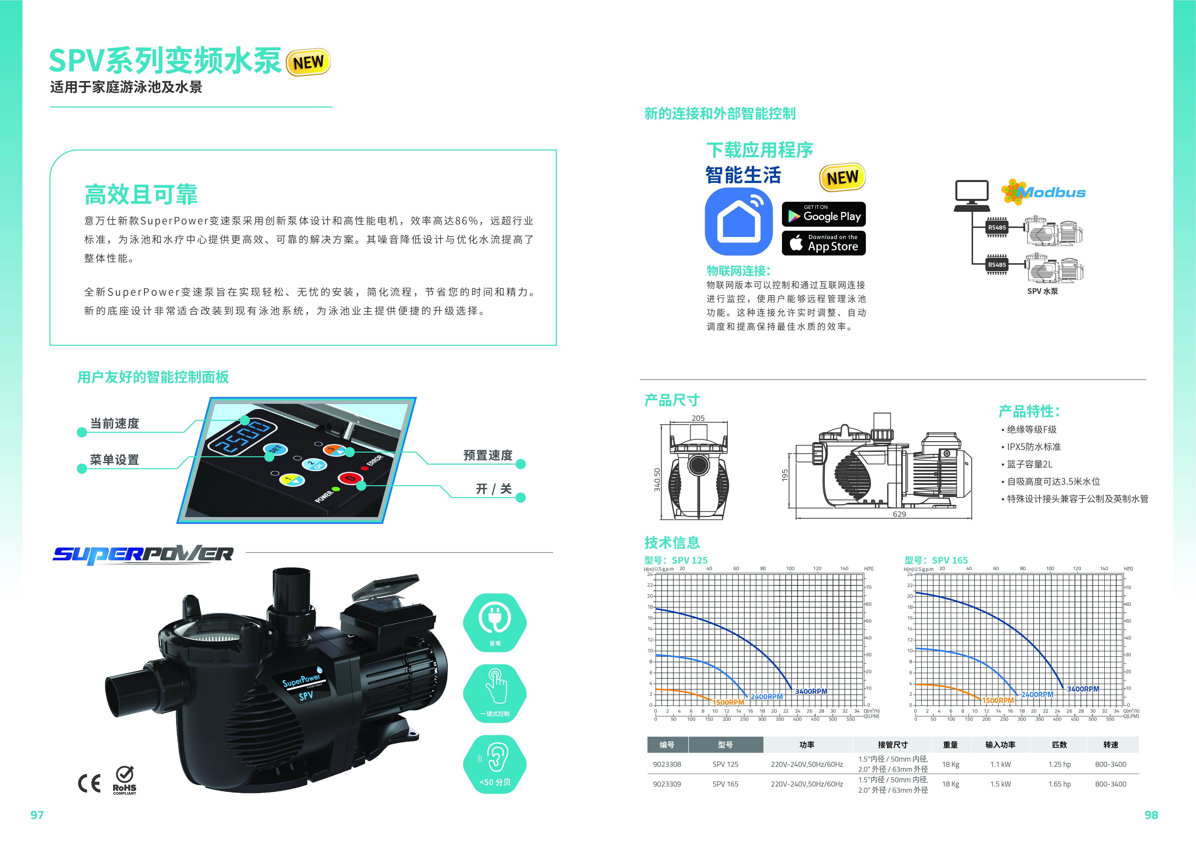 意萬仕新款SuperPower變速泵采用創(chuàng)新泵體設(shè)計和高性能電機(jī),效率高達(dá)86%,遠(yuǎn)超行業(yè) 標(biāo)準(zhǔn),為泳池和水療中心提供更高效、可靠的解決方案。其噪音降低設(shè)計與優(yōu)化水流提高了 整體性能。 全新SuperPower變速泵旨在實(shí)現(xiàn)輕松、無憂的安裝,簡化流程,節(jié)省您的時間和精力。 新的底座設(shè)計非常適合改裝到現(xiàn)有泳池系統(tǒng),為泳池業(yè)主提供便捷的升級選擇。