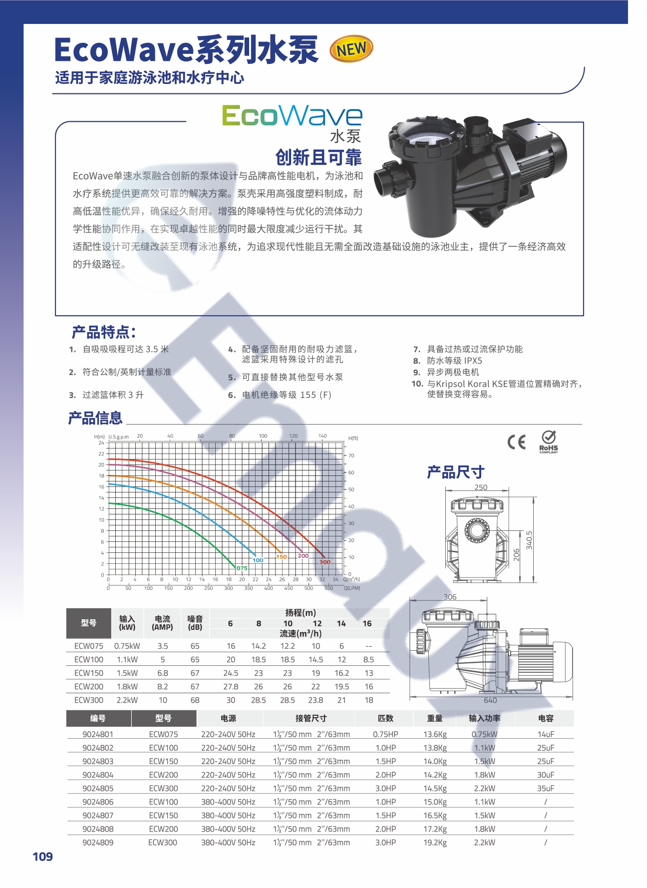 EcoWave單速水泵融合創(chuàng)新的泵體設(shè)計(jì)與品牌高性能電機(jī),為泳池和 水療系統(tǒng)提供更高效可靠的解決方案。泵殼采用高強(qiáng)度塑料制成,耐 高低溫性能優(yōu)異,確保經(jīng)久耐用。增強(qiáng)的降噪特性與優(yōu)化的流體動(dòng)力 學(xué)性能協(xié)同作用,在實(shí)現(xiàn)卓越性能的同時(shí)最大限度減少運(yùn)行干擾。其 適配性設(shè)計(jì)可無(wú)縫改裝至現(xiàn)有泳池系統(tǒng),為追求現(xiàn)代性能且無(wú)需全面改造基礎(chǔ)設(shè)施的泳池業(yè)主,提供了一條經(jīng)濟(jì)高效 的升級(jí)路徑。