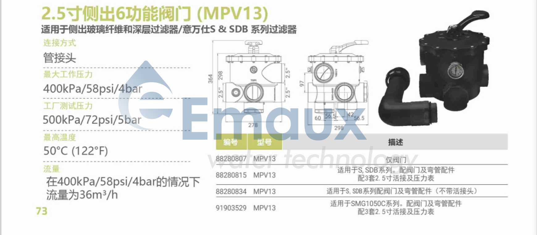 | EMAUX - 2.5"SIDEMOUNT 6-WAY VALVE | |||