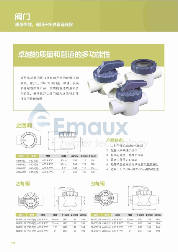 競技池采用高質量的進口材料和嚴格的質量控制系統(tǒng),意萬仕(EMAUX)閥門是一款便于安裝和穩(wěn)定性高的產品。優(yōu)質的管道質量和多功能性,使得意萬仕閥門成為泳池和水療行業(yè)的極佳選擇