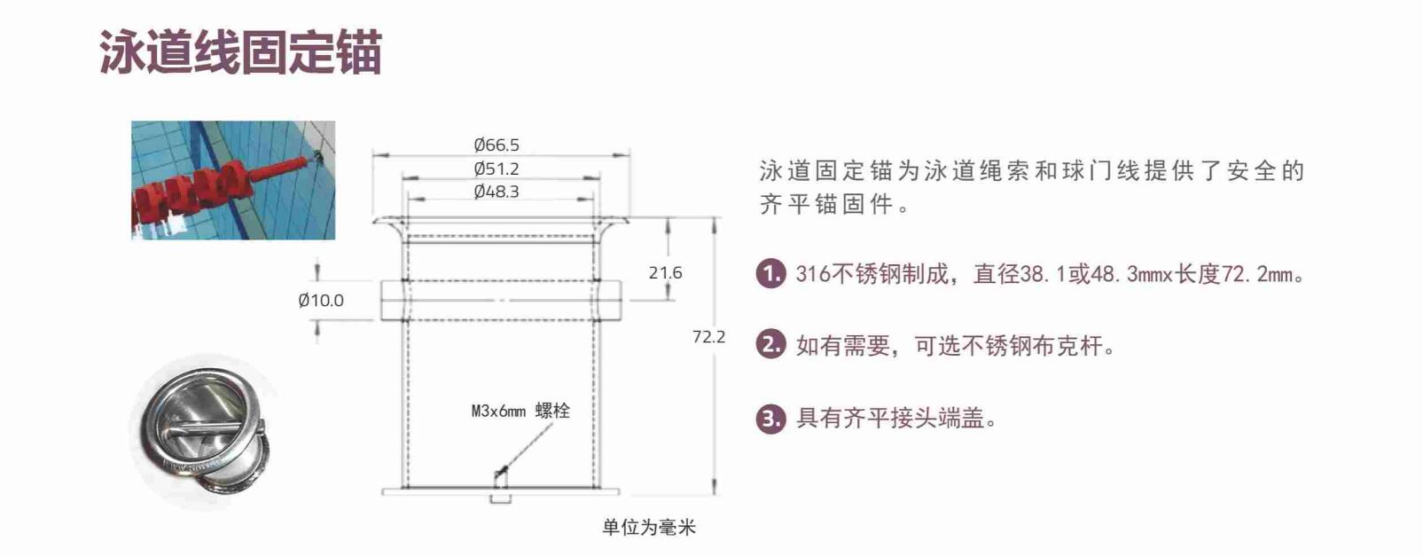 競(jìng)技池1. 316不銹鋼制成,直徑38.1或48.3mmx長(zhǎng)度72.2mm。